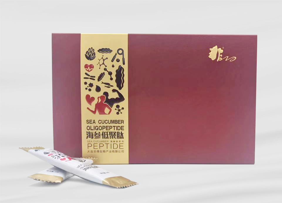 非得海參低聚肽是以大連海刺參為主要原料,采用現(xiàn)代酶解生物技術(shù)將海參大分子蛋白質(zhì)分解成小分子低聚肽,同時(shí)將海參中與蛋白質(zhì)緊密鏈接在一起的生物活性物質(zhì)如海參粘多糖、海參素等成功分離,再輔以深海鱈魚低聚肽和小麥胚芽低聚肽精制而成的海洋營養(yǎng)功能食品。